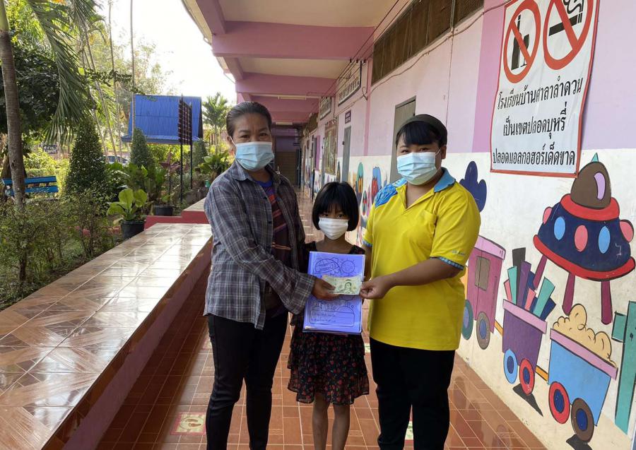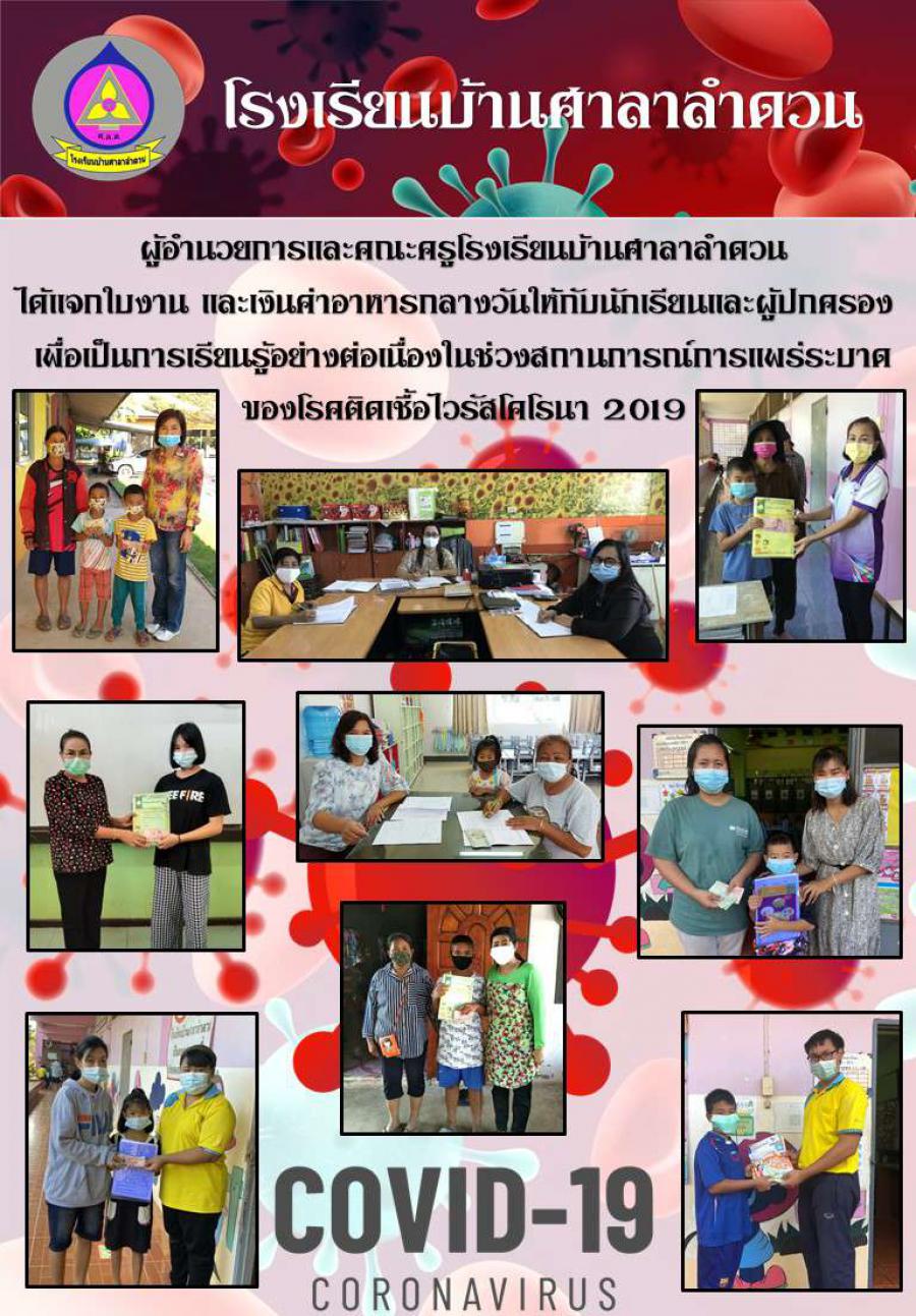 ผู้อำนวยการและคณะครูโรงเรียนบ้านศาลาลำดวน แจกใบงานและเงินค่าอาหารกลางวันให้กับนักเรียนและผู้ปกครองเพื่อเป็นการเรียนอรู้อย่างต่อเนื่องในช่วงสถานการณ์ดารแพร่ระบาดของโรคติดเชื้อไวรัสโคโรนา 2019 S:0