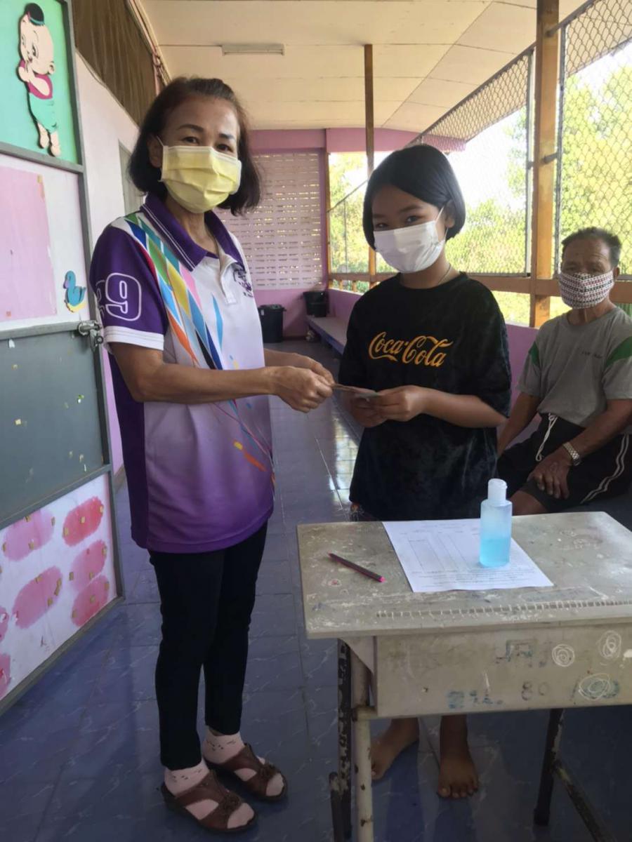 ผู้อำนวยการและคณะครูโรงเรียนบ้านศาลาลำดวน แจกใบงานและเงินค่าอาหารกลางวันให้กับนักเรียนและผู้ปกครองเพื่อเป็นการเรียนอรู้อย่างต่อเนื่องในช่วงสถานการณ์ดารแพร่ระบาดของโรคติดเชื้อไวรัสโคโรนา 2019 S:0